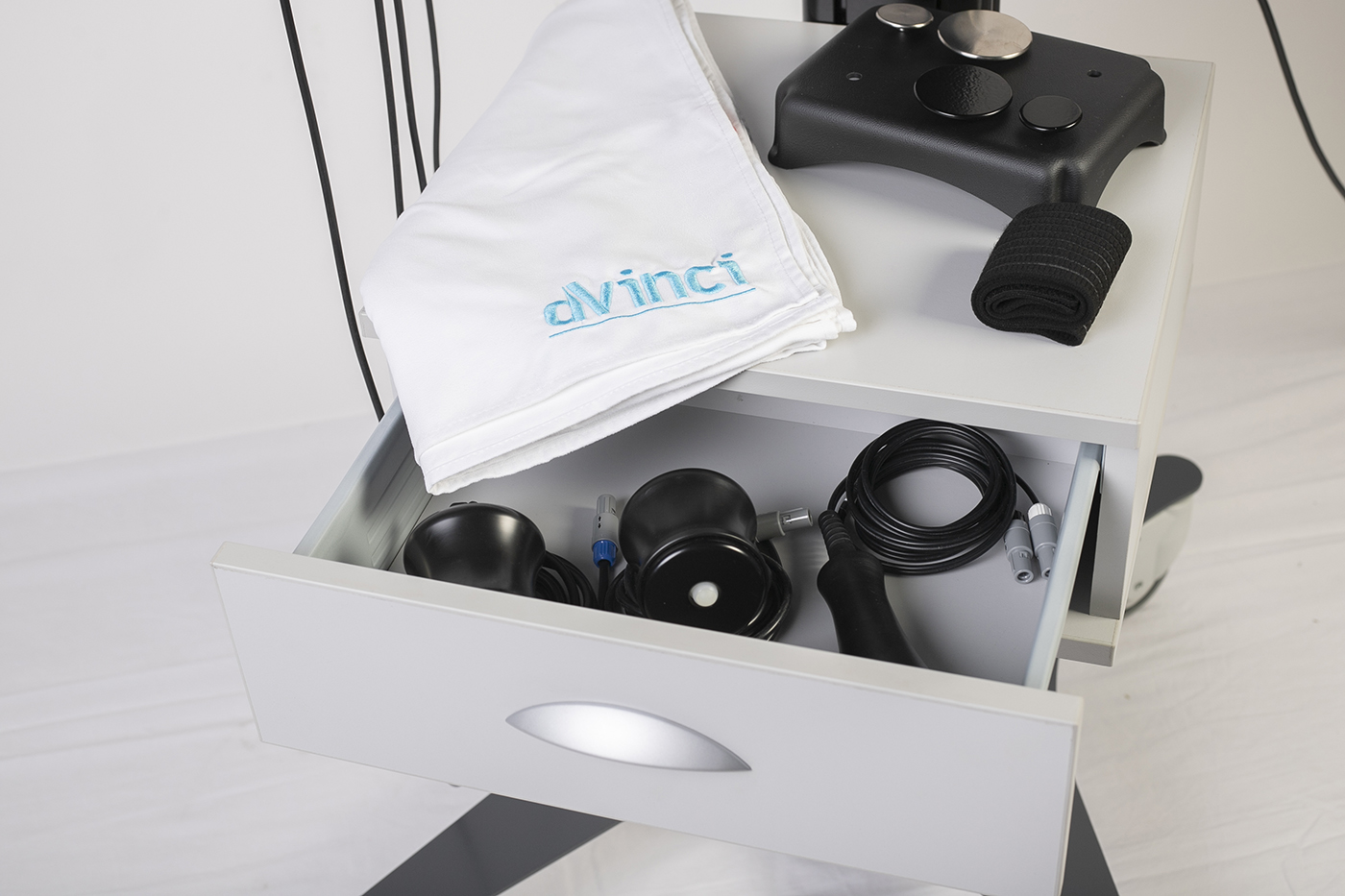 dVinci TWO PLUS is equipped with the unique dual channel feature that allows the therapist to work on two body areas or even two different patients at the same time.